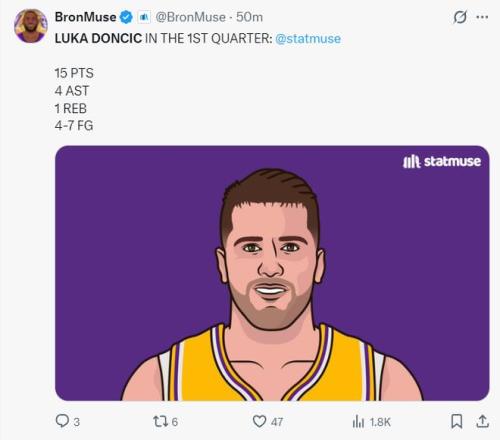 第二节东契奇的进攻效率明显下滑,单节3中1+三分1中0拿到4分3篮板1助攻,半场东契奇19分5助攻4篮板3失误,半场19分对于他个人来说不算太好。