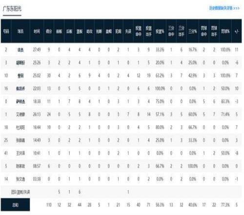 德比大战仅赢5分!广东队5人发挥完美,1人勉强及格,4人太低迷了