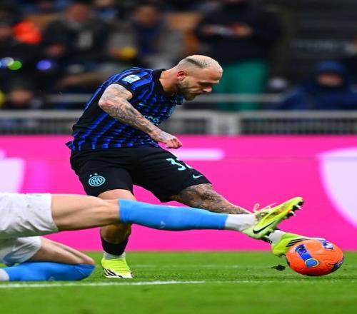此役回到梅阿查的国际米兰,为了能够复仇,沿用了球队最熟悉的三后卫体系,索默镇守龙门,巴斯托尼、阿坎吉和比塞克构筑后防,迪马尔科、泽林斯基、恰尔汗奥卢、巴雷拉和恩里克坐镇中场,双箭头则是劳塔罗马丁内斯搭档小图拉姆。